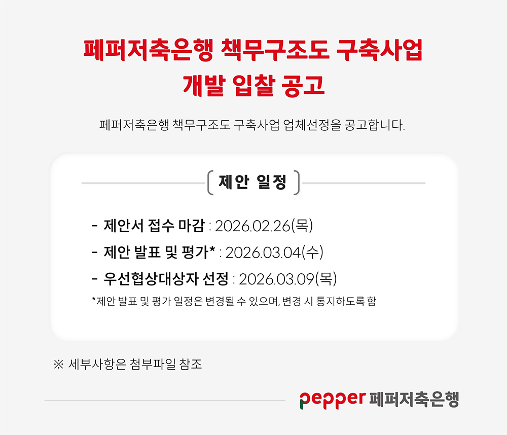 페퍼저축은행의 공고사항 및 입찰공고를 안내해 드립니다.