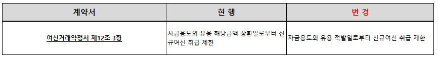 ※ 개정 내용은 신규대출(기존 대출의 증액, 재약정, 대환, 채무인수 등을 포함. 다만, 대출을 기한연장하는 경우와 금리 또는 만기 조건만 변경되는 재약정∙대환 등은 제외)부터 적용