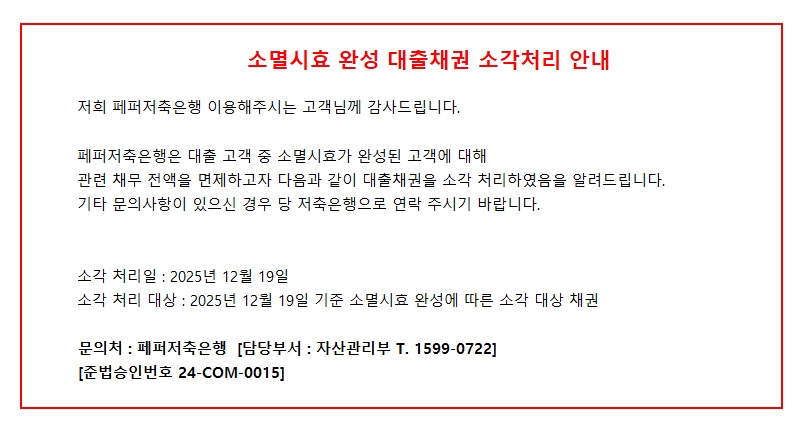 소멸시효 완성 대출채권 소각처리 안내
