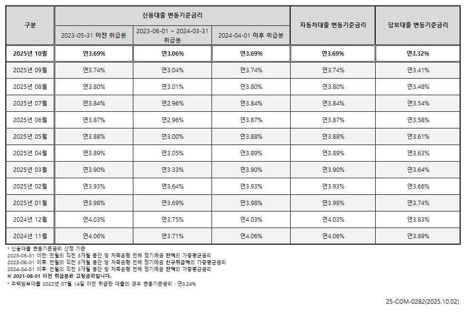 2025년 11월 변동 기준 금리 공시 안내