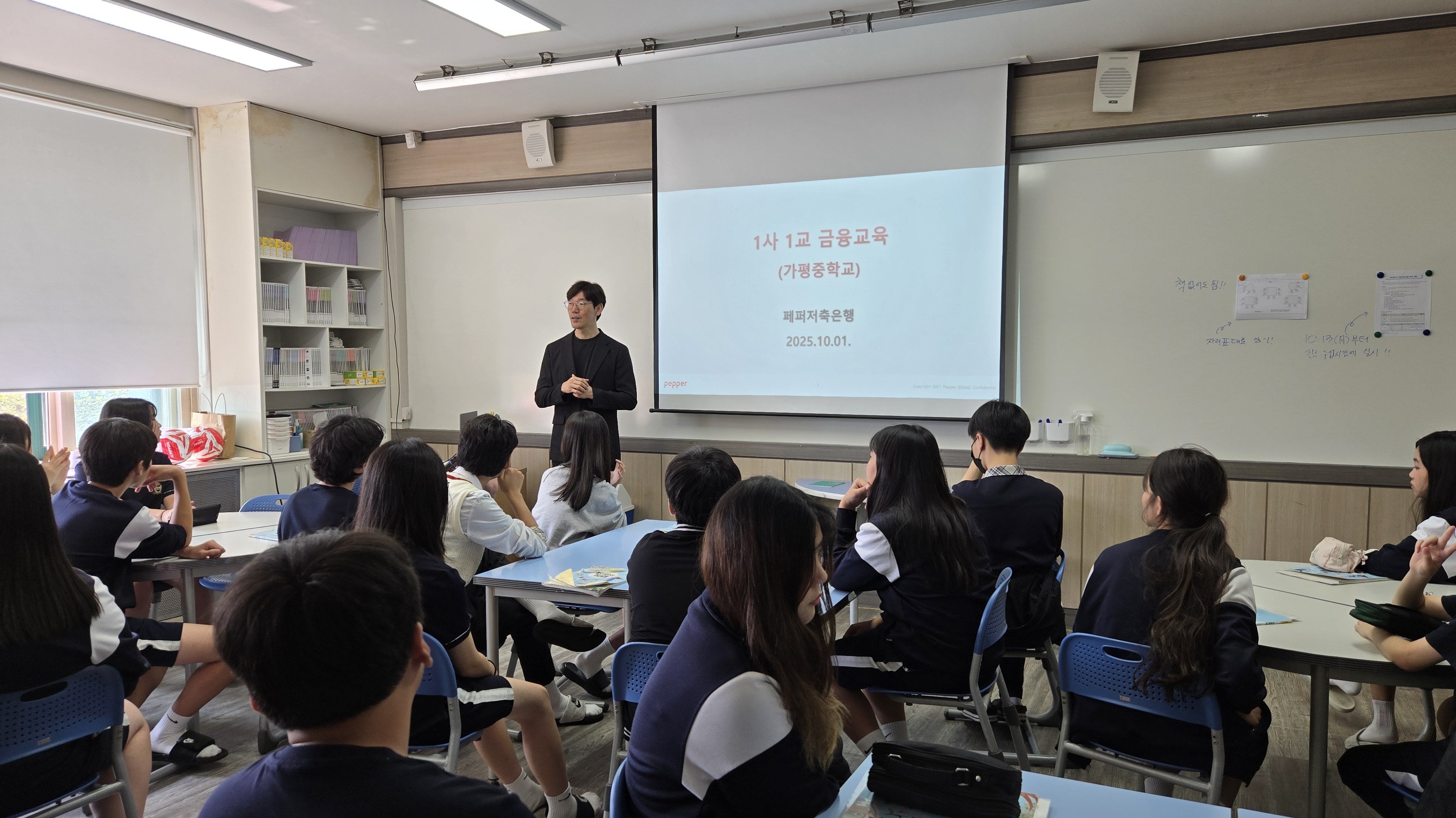 페퍼저축은행, 가평중학교와 '1사1교 금융교육' 진행