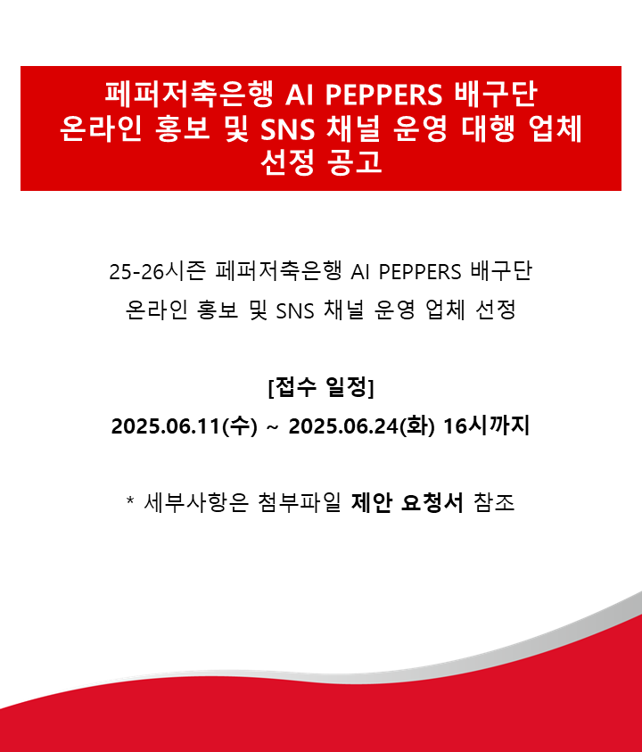 [마감]페퍼저축은행 AI PEPPERS 배구단 온라인 홍보 및 SNS 채널 운영대행 업체 선정 재공고