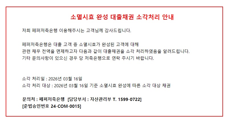 채권 매각관련 개인정보 제공예정 사실 공지
